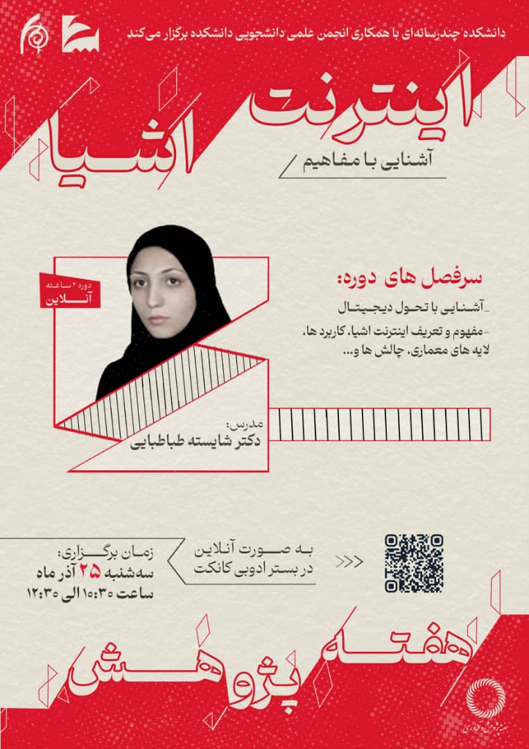 به گزارش معاونت پژوهش، کارآفرینی و فناوری دانشگاه هنر اسلامی تبریز، دانشکده چندرسانهای به مناسبت هفته پژوهش و فناوری، دوره آموزشی «اینترنت اشیا» را بهصورت برخط برگزار میکند. این دوره با هدف آشنایی مخاطبان با مفاهیم پایه و کاربردی اینترنت اشیا طراحی شده و به بررسی موضوعاتی همچون تحول دیجیتال، تعریف و کارکردهای اینترنت اشیا، لایههای معماری این فناوری و چالشها و الزامات پیادهسازی آن میپردازد. محتوای دوره بهگونهای تنظیم شده است که زمینهای مناسب برای درک نقش اینترنت اشیا در حوزههای مختلف فناوری، طراحی و صنایع خلاق فراهم آورد.