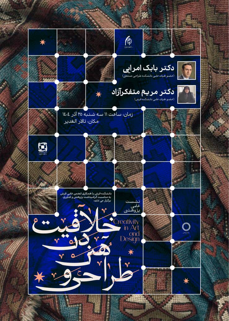 به گزارش معاونت پژوهش، کارآفرینی و فناوری دانشگاه هنر اسلامی تبریز، نشست علمی «خلاقیت در هنر و طراحی» به مناسبت هفته پژوهش و فناوری و با هدف توجه به اهمیت خلاقیت در فرآیندهای هنری و طراحی برگزار می‌شود. این نشست با رویکرد تبیین جایگاه پژوهش در تقویت اندیشه خلاق و بررسی مسیرهای شکل‌گیری ایده تا اجرای اثر هنری برگزار خواهد شد و فرصتی برای پرداختن به نقش نوآوری در جریان‌های معاصر هنر و طراحی فراهم می‌کند.