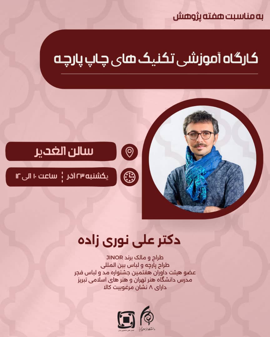 به گزارش معاونت پژوهش، کارآفرینی و فناوری دانشگاه هنر اسلامی تبریز، کارگاه آموزشی «تکنیکهای چاپ پارچه» به مناسبت هفته پژوهش و فناوری و با هدف آشنایی دانشجویان و علاقهمندان با فرآیندها و روشهای کاربردی چاپ پارچه برگزار میشود. در این کارگاه، مباحث مرتبط با روشهای نوین چاپ، فرآیندهای اجرایی و نکات تخصصی حوزه طراحی و چاپ پارچه تشریح خواهد شد تا شرکتکنندگان با رویکردی عملی و کاربردی با این حوزه آشنا شوند.